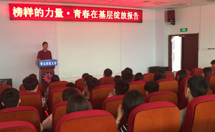 5月11日,高密校区榜样的力量系列活动之青春在基层绽放主题报告会在图书馆东报告厅举行。化工学院兼职辅导员王勇作为2014年研究生支教团成员到高密校区做“青春梦 支教梦”报告会,高密校区110余名学生干部聆听报告会。