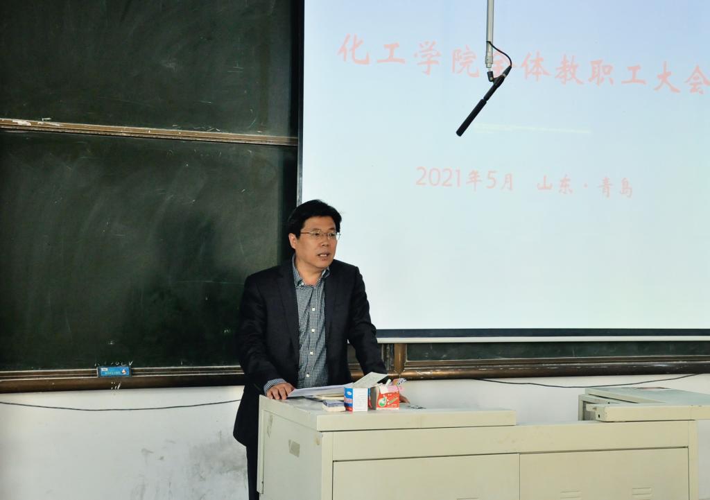 5月18日下午,化工学院全体教职工大会在一教301举行,院长刘福胜、党委书记钱翌、副院长田文德、王许云及教职工100余人参加。会议由党委书记钱翌主持。