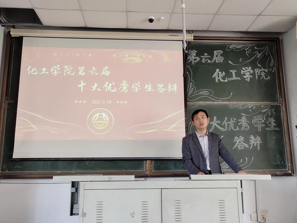 为充分发挥优秀学生的带头模范作用,激励广大学子奋发作为,5月18日下午,化工学院第六届十大优秀学生答辩会在第一教学楼402教室举办。化工学院团委书记秦洪庆、团委老师殷佳珞、李亚楠及全体兼职辅导员出席本次活动。