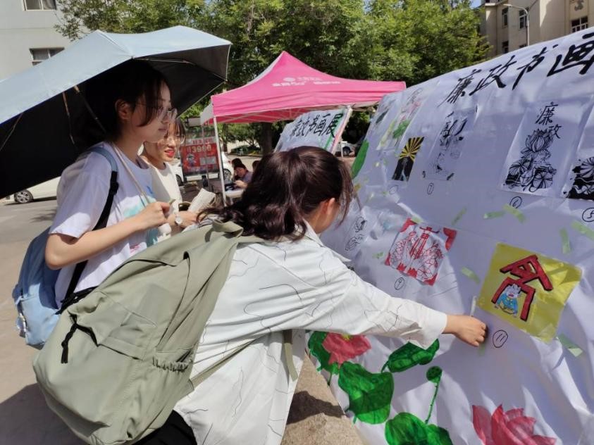 展览现场,一副副书画作品将写意与表意相结合,或抒怀以言志,或激越以鞭策,琳琅满目、各有特色,深深地吸引着同学们。他们或驻足凝望,或交流讨论,体会作品深远意境,品味题材丰富内涵。同学们深受启迪,纷纷表示,通过欣赏这些书画作品,对党风廉政建设有了更深的领悟,在今后的学习和生活中要更加强化自律意识、提高道德修养,带头遵守纪律和规矩,展现新时代大学生的良好风貌。