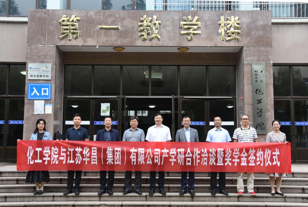 6月3日下午,化工学院与江苏华昌(集团)有限公司产学研合作洽谈暨奖学金签约仪式在学院2013会议室举行。江苏华昌(集团)有限公司党委书记、董事长胡波,党委委员、办公室主任楼新灿,团委书记李军海,江苏华昌化工股份有限公司副总经理李长胜、总经理助理李昊锋出席活动。学校教育发展基金会办公室主任王泽鹏,化工学院党政领导刘福胜、钱翌、孙明媚,专业教师吕志果、朱兆友、王广建、徐东彦以及各教研室青年教师代表参加。