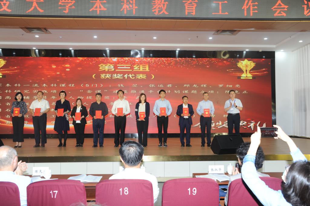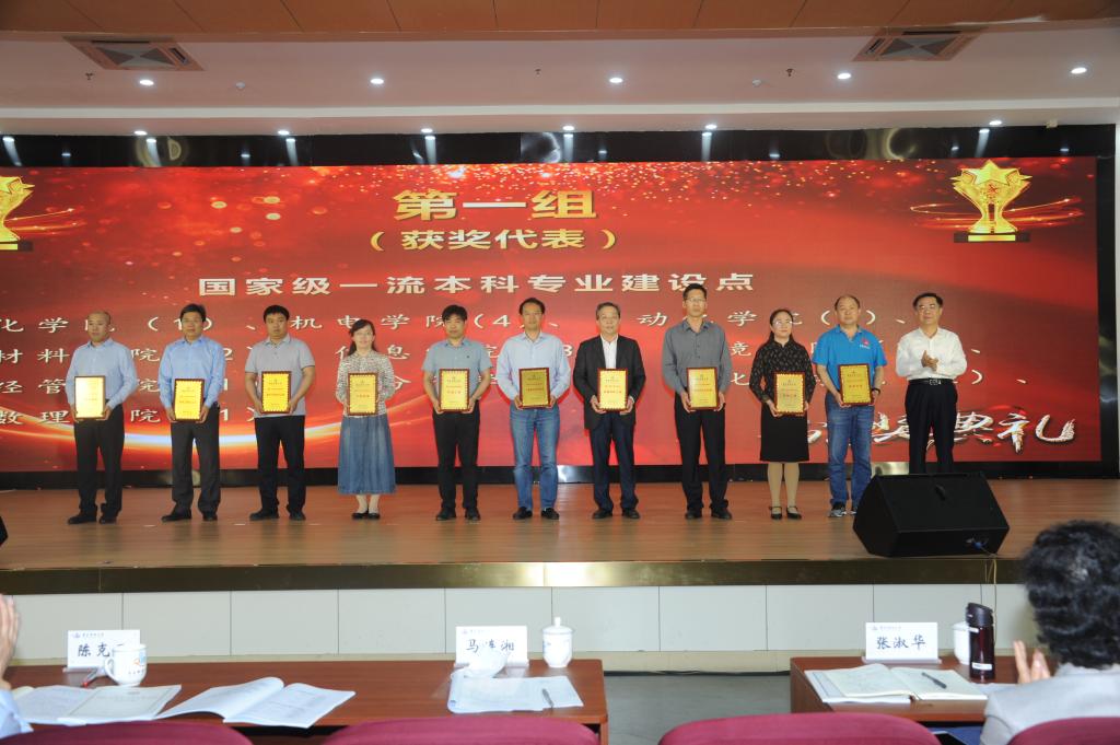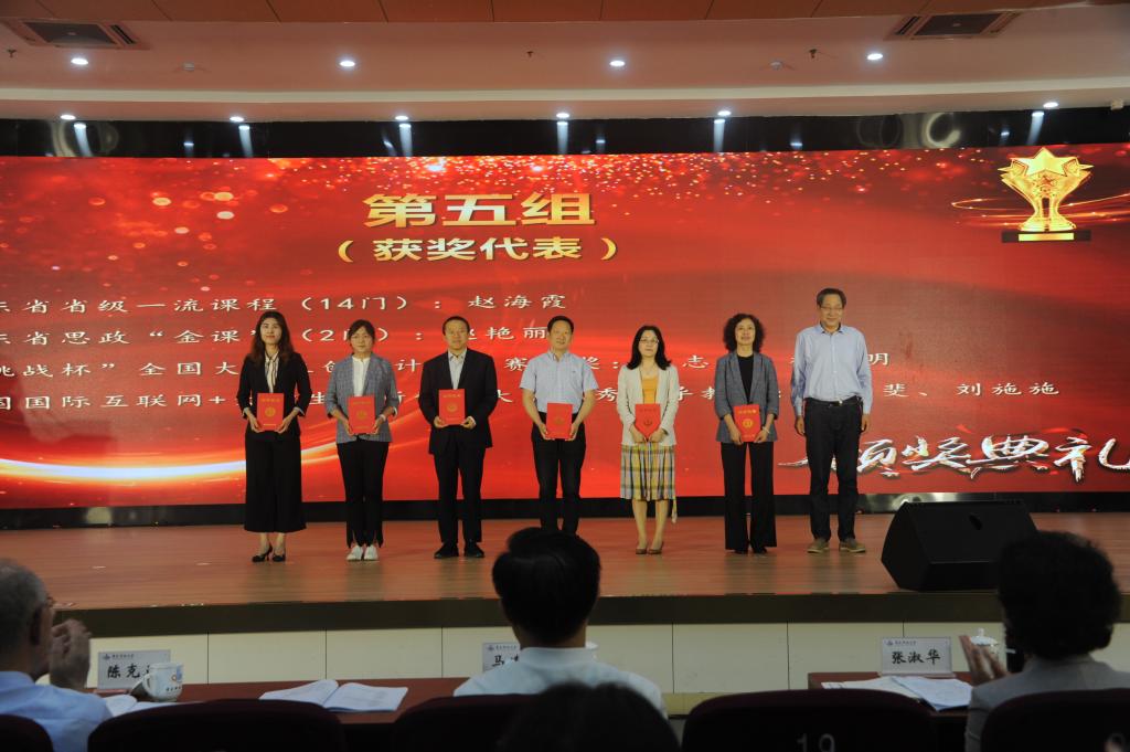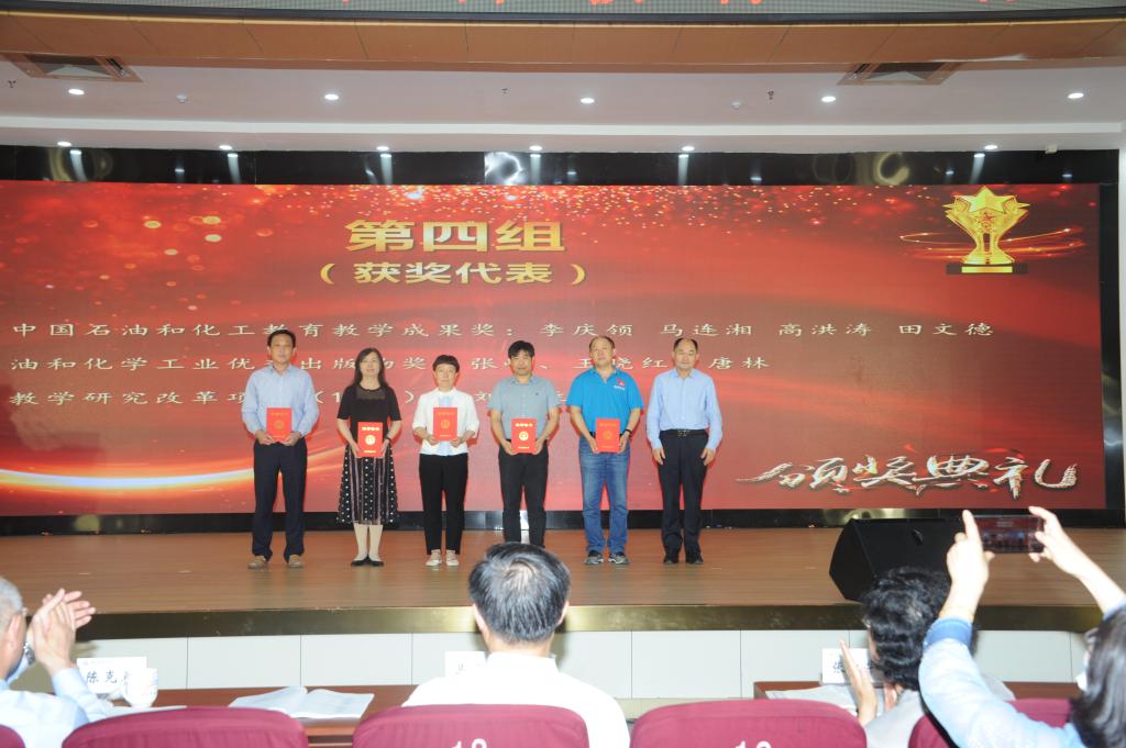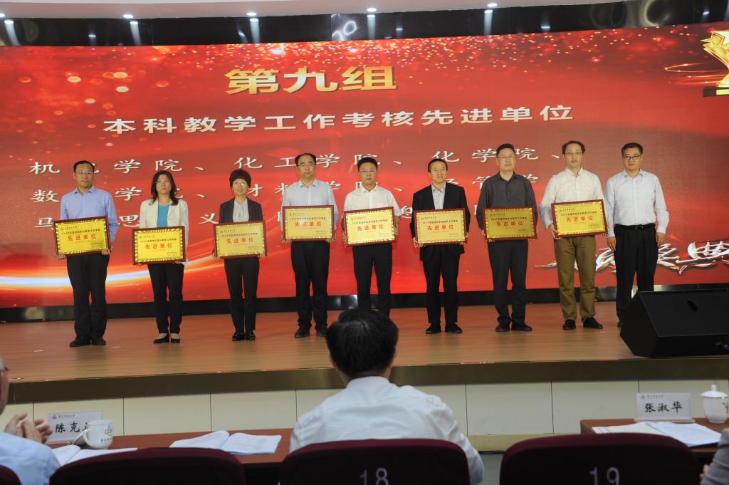 会上宣布了《关于表彰2019-2020年教育教学先进集体和个人的决定》等表彰文件。会上对先进集体和个人进行表彰。院长刘福胜作为国家一流本科专业建设点上台领奖;党委书记钱翌代表国家一流本科课程上台领奖;副院长田文德代表教育部工程教育认证专业上台领奖;化工原理教研室主任王晓红代表石油和化学工业优秀出版物奖上台领奖;徐环斐作为中国国际互联网+大学生创新创业大赛优秀指导教师上台领奖;柳晓阳作为山东省大中专学生志愿者暑期“三下乡”社会实践活动优秀指导教师上台领奖;高传慧作为771771威尼斯cm大全第四届“十佳班主任(导师)”上台领奖;田文德代表本科教学工作考核先进单位上台领奖。
