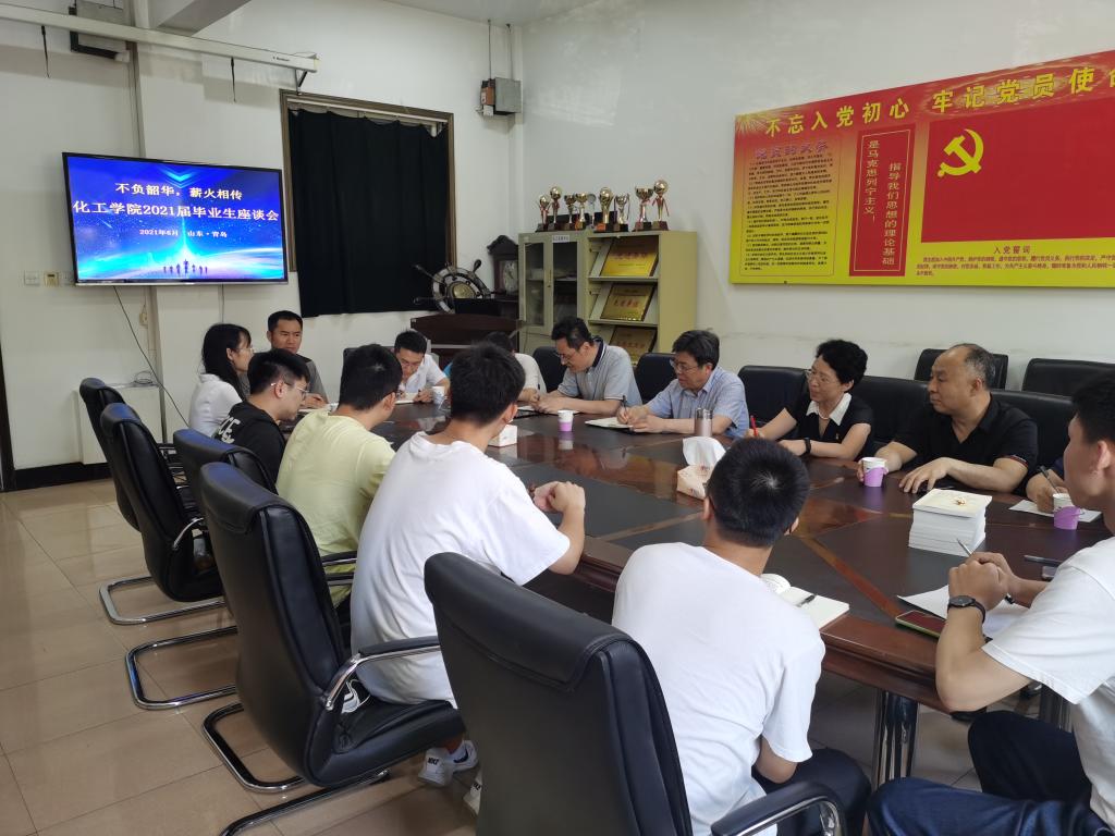 栀子花香,杨柳依依,又是一年毕业季。6月21日下午,化工学院召开毕业生代表座谈会,送别即将离校的2021届毕业生。化工学院院长刘福胜,副院长田文德、王许云,副书记孙明媚出席座谈会,专业课教师代表王政、吴汝林、吴祥根,辅导员耿赛、王乐昌,各班毕业生代表参加座谈会。座谈会由副院长田文德主持。