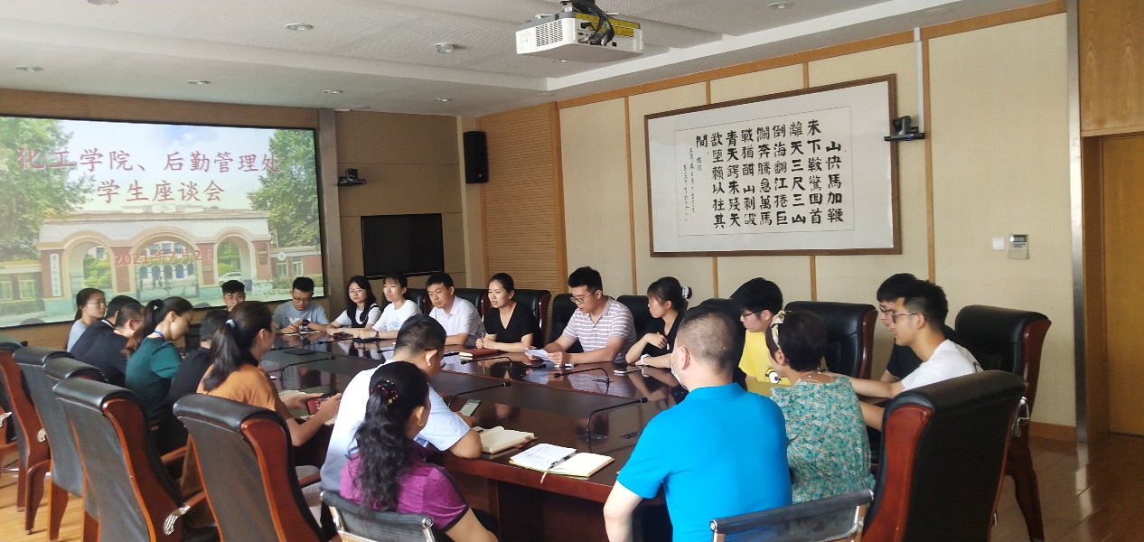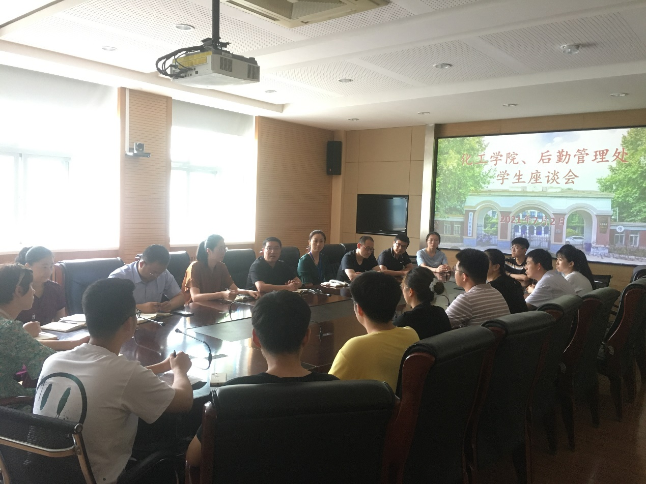 7月2日下午2:00,化工学院与学校后勤处联合开展的“后勤管理与服务工作”师生座谈会在四方校区一号行政楼第一会议室召开。后勤处副处长代秀亭、化工学院党委副书记孙明媚、团委书记秦洪庆、辅导员代表,学校公寓服务中心、饮食服务中心、能源保障中心的负责老师以及20名学生代表参加了会议。会议由孙明媚主持。