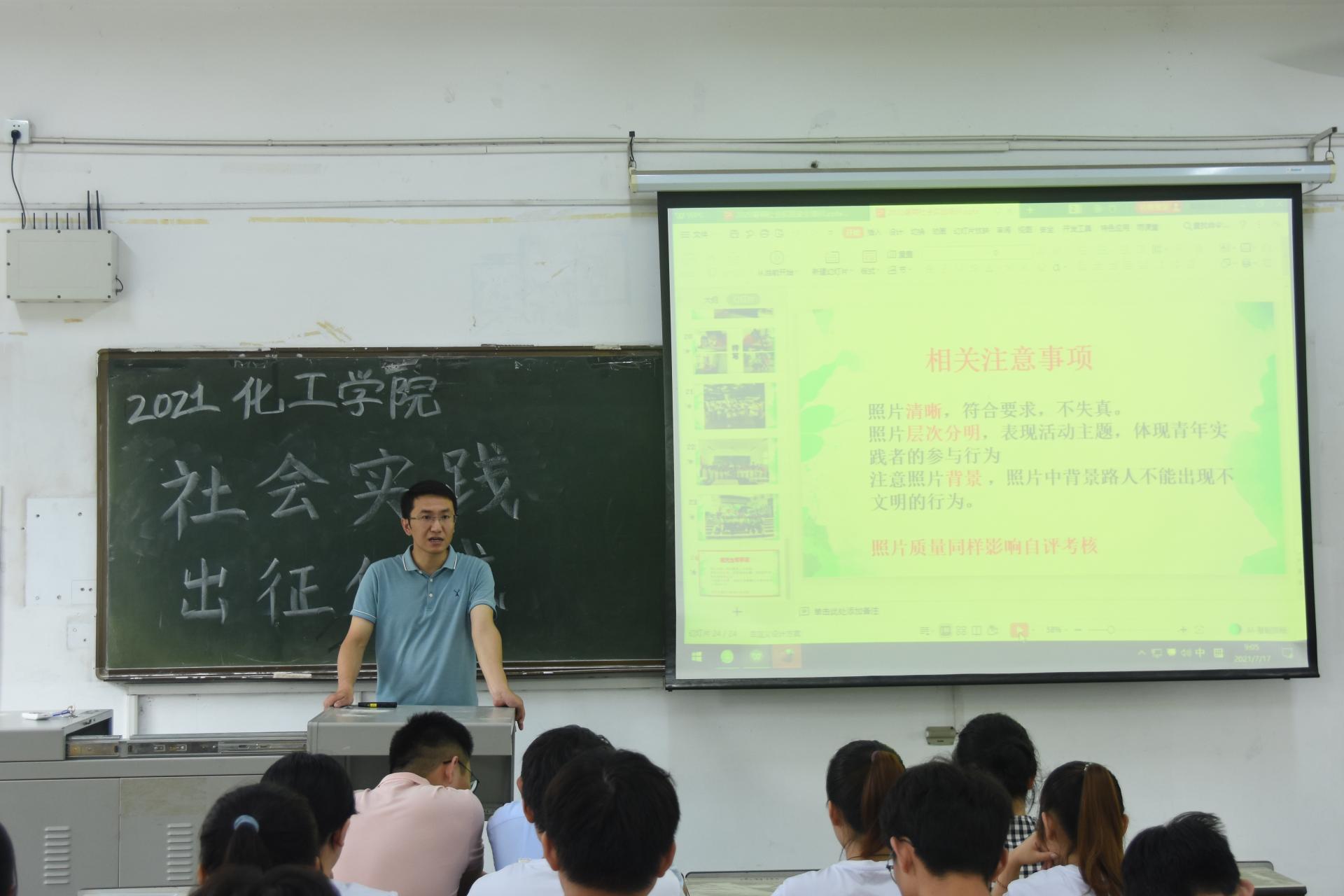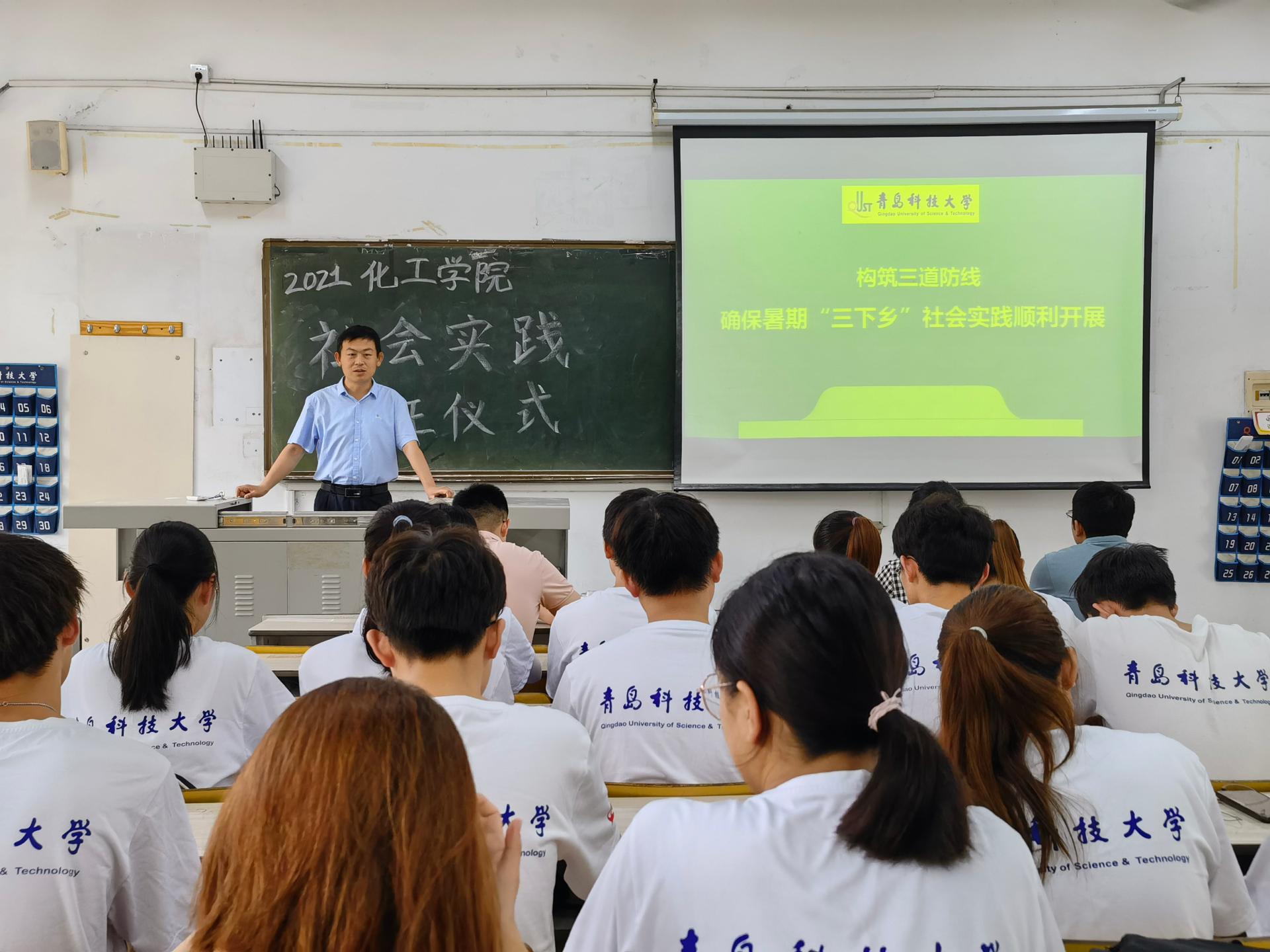 7月17日,化工学院2021年暑期“三下乡”社会实践活动出征仪式在四方校区一号教学楼举行。团委书记秦洪庆、团委副书记耿赛,辅导员柳晓阳、付文静、殷佳珞,带队教师以及暑期社会实践学生代表参加活动。