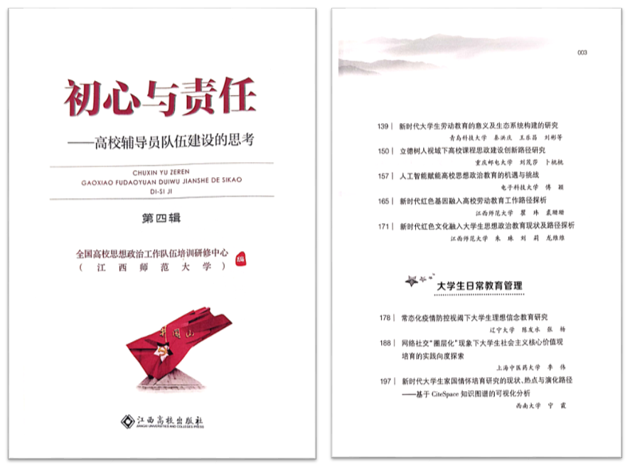 据悉,《初心与责任——高校辅导员队伍建设的思考》选编的优秀论文在辅导员素质能力提升、思想理论教育与价值引领、大学生日常教育管理等方面进行了积极探索和深入研究。有些文章主要就加强辅导员队伍建设进行了思考,就其路径与对策进行了设计;有些文章就战“疫”思政、学“四史”教育与大学生思想政治教育的融合进行了探讨;有些文章就大学生的日常教育管理如劳动教育、德育文化等进行了探索。这些成果,具有定的理论水平,也有较高的实践价值。这些成果的交流与应用,将对高校辅导员队伍建设和大学生思想政治教育工作产生积极作用。