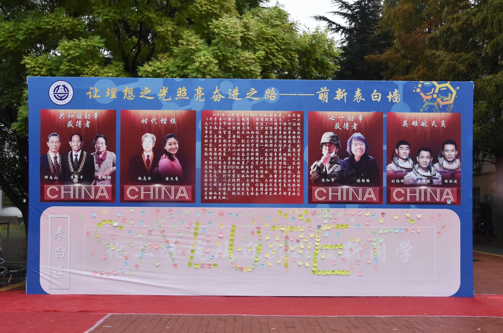 理想照亮未来,榜样引领征程。化工学院制作“让理想之光照亮奋进之路——萌新表白墙”,向同学们展示“共和国勋章获得者”、“时代楷模”、“七一勋章获得者”、“英雄航天员”的事迹风貌,引导2021级学生打开正确“追星”方式,向英雄告白,向榜样致敬,以新生入学为契机上好“开学第一课”,让他们从光辉事迹中体悟理想担当,汲取奋进力量。