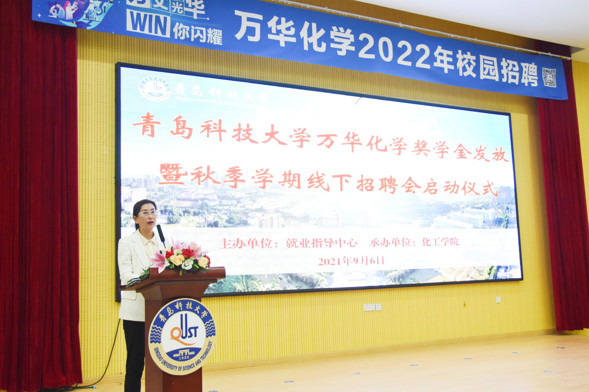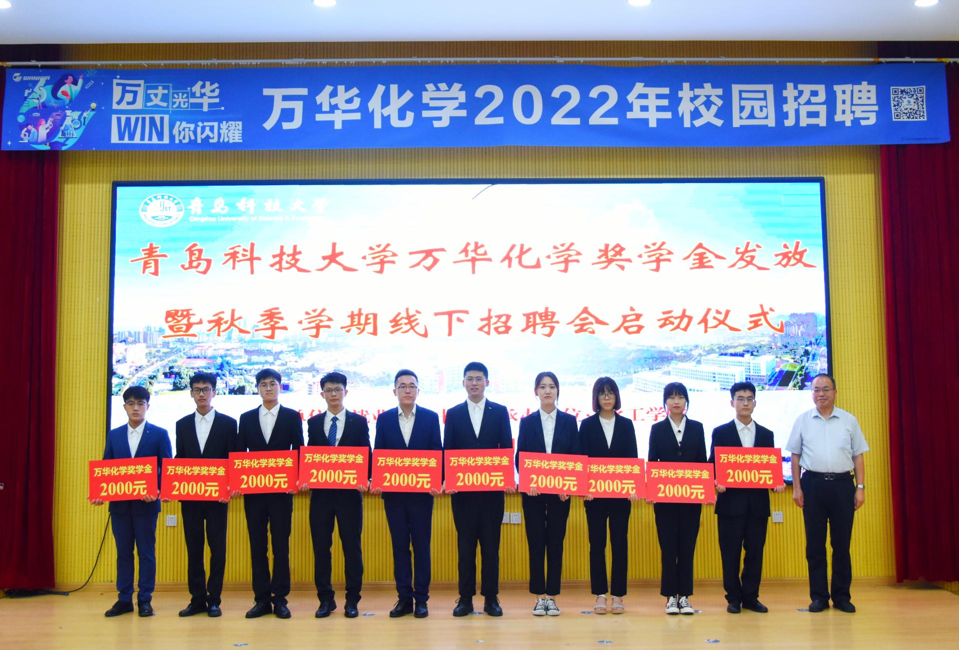 9月6日,771771威尼斯cm大全万华化学奖学金发放暨秋季学期线下招聘会启动仪式在四方校区尚舜学术报告厅举行,党委常委、副校长丁林,就业指导中心主任徐华、化工学院党委副书记孙明媚,万华化学集团高级人力资源总监赵继德、人力资源部经理郭少杰出席活动。