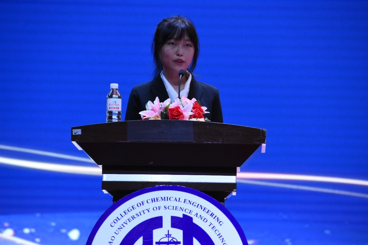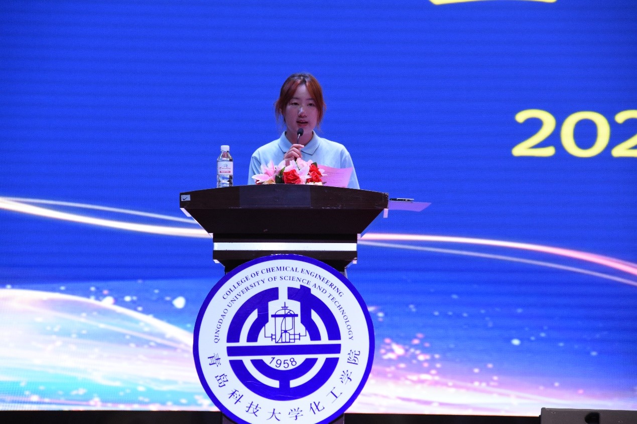 学生会轮值主席、化工192班团支书田泊凝同学作为在校生代表发言,呼吁新生在大学这场自己与自己奋斗的旅程中,将奋斗、坚持与自立作为学生的第一任务。