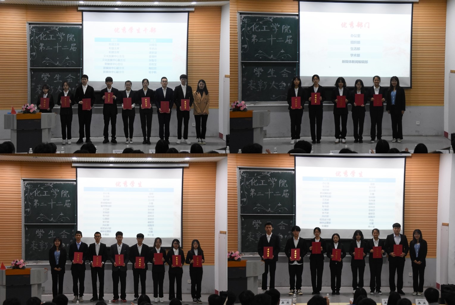 此次表彰大会在庄严的国歌声中拉开帷幕。李亚楠宣读关于表彰第二十二届学生会优秀学生干部、优秀部门、优秀活动、优秀学生的决定。刘增宝、李思远、唐家璇等八位学生荣获优秀学生干部称号,办公室、组织部、生活部、学术部、新媒体新闻编辑部荣获优秀部门称号,实践部“星星点亮黑夜,感恩照亮心灵”系列活动、办公室“玄香妙笔现党风,绿砚丹青系党情”艺术展等五个活动获得优秀活动称号,庞博、张宇骄、王小菲、孙蕾等十四位学生荣获优秀学生称号,李亚楠和孙希玲分别为其颁发荣誉证书。