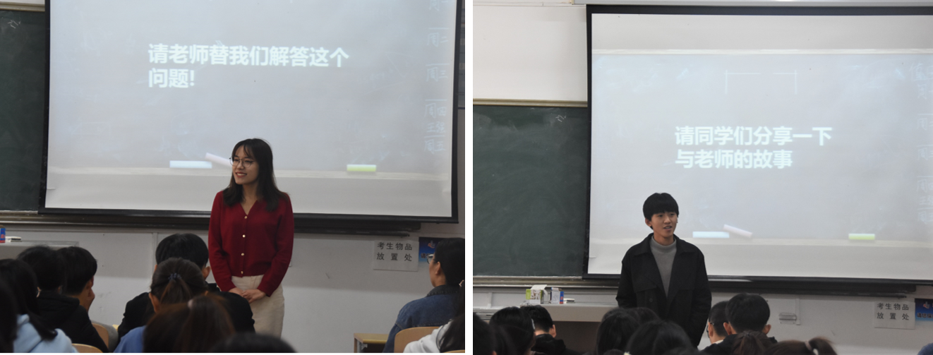 师生共情,共诉心声。10月23日,化工学院在第二教学楼109教室举行师生交流会。团委老师孙希玲和大一部分学生参加了本次活动。 同学们朗读赞誉老师的诗歌,表达心中对于老师的赞美和感谢。随后,孙希玲回答“学生对于老师来说意味着什么”,她答道学生是她生活与工作的全部,她也是他们大学四年的同行者和见证人,大一学生们回答了第二个问题,“老师对于学生意味着什么”。最后,同学们为他们心目中最想感谢的老师写了一封信,信中洋溢着满满的爱与感恩。