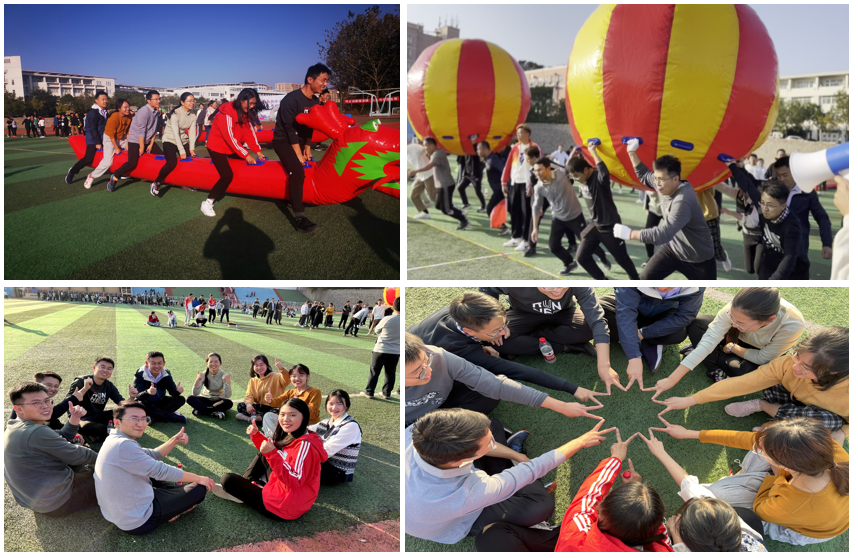比赛,由团体项目和个人项目组成。团体项目中,孙明媚、秦洪庆、耿赛、刘彬、李亚楠、殷佳珞参加了勇往直前团体赛,获得三等奖;孙明媚、秦洪庆、耿赛、王乐昌、刘彬、柳晓阳、付文静、殷佳珞参加了齐心协力团体赛,获得二等奖;孙明媚、秦洪庆、耿赛、刘彬、付文静参加了托球跑个人赛,耿赛发挥出色获得二等奖;柳晓阳、殷佳珞、孙希玲参加滚圈跑个人赛,柳晓阳发挥出色获得二等奖。比赛中,参赛队员精神饱满,斗志昂扬,顽强拼搏,奋勇争先,团结奋进,放松了心情,释放了压力,交流了感情,在欢声笑语中感受运动的魅力和团队的力量。