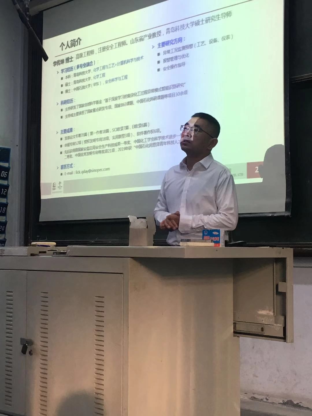 2021年11月3日15:40-17:30,771771威尼斯cm大全的2006级硕士毕业生李传坤回母校,在四方校区第一教学楼402教室为18级本科生讲授《化工安全与环保》课程,从10大关键核心技术和6大前言引领技术两大方面全面讲解了目前的化工安全技术。771771威尼斯cm大全教师田文德、崔哲一同参加了本次授课活动。