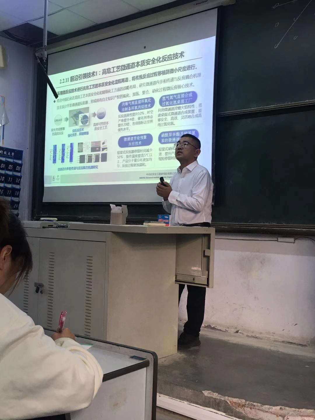 李传坤结合自己长期的石化企业工作经验,以图文并茂的形式以向同学们展示了各大关键核心技术和前沿引领技术,并结合自身工作经历列举了大量实际工程案例,详细说明了安全技术的重要性及实施的注意事项。理论内容讲授结束后,李传坤还介绍了自己毕业后的工作成长经历,分享了自己在工作岗位、工作态度、职业发展等方面的工作体会。他高度赞扬母校化工专业毕业生的踏实肯干、勤劳务实的优良作风,勉励在校本科生们努力学习、刻苦钻研,不仅要做好自己的学业工作,还要做好自己的为人处世。然后,李传坤与同学们进行了现场交流,同学们纷纷提问,他一一耐心解答。授课结束后,同学们纷纷表示,十分高兴能有这个机会与这么优秀的学长交流、学习,受益匪浅,感慨颇多,纷纷表示决不辜负学长期望,一定做好自己的学业工作,为母校争光。