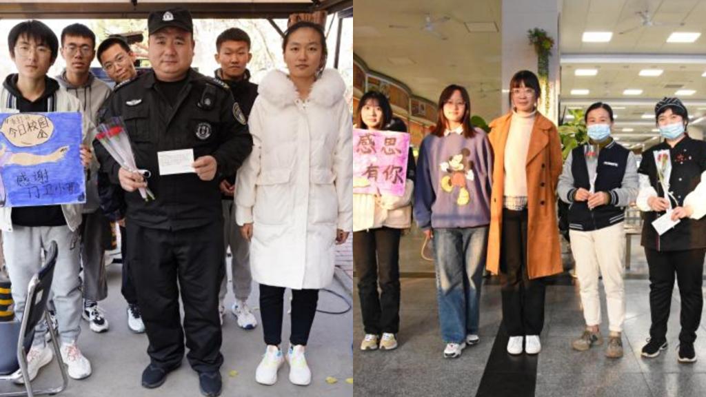 同学们向宿管阿姨,保安叔叔和食堂工作人员赠送了鲜花和贺卡,表达对他们工作的认可和感恩,感谢他们在自己岗位上兢兢业业和辛勤付出。同时,对教职工、学生以及校园辛苦奉献的叔叔阿姨进行采访、合照并录制视频,后期在扬帆化工上展出,让更多同学感受到温暖。