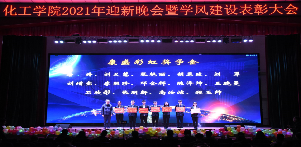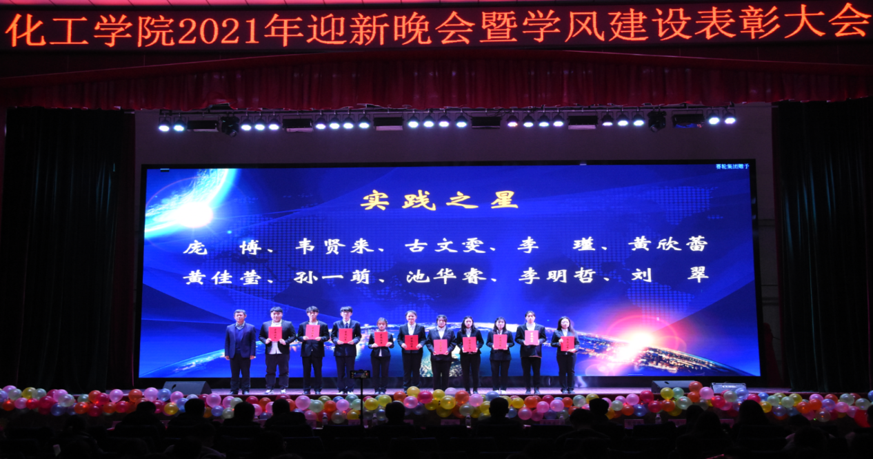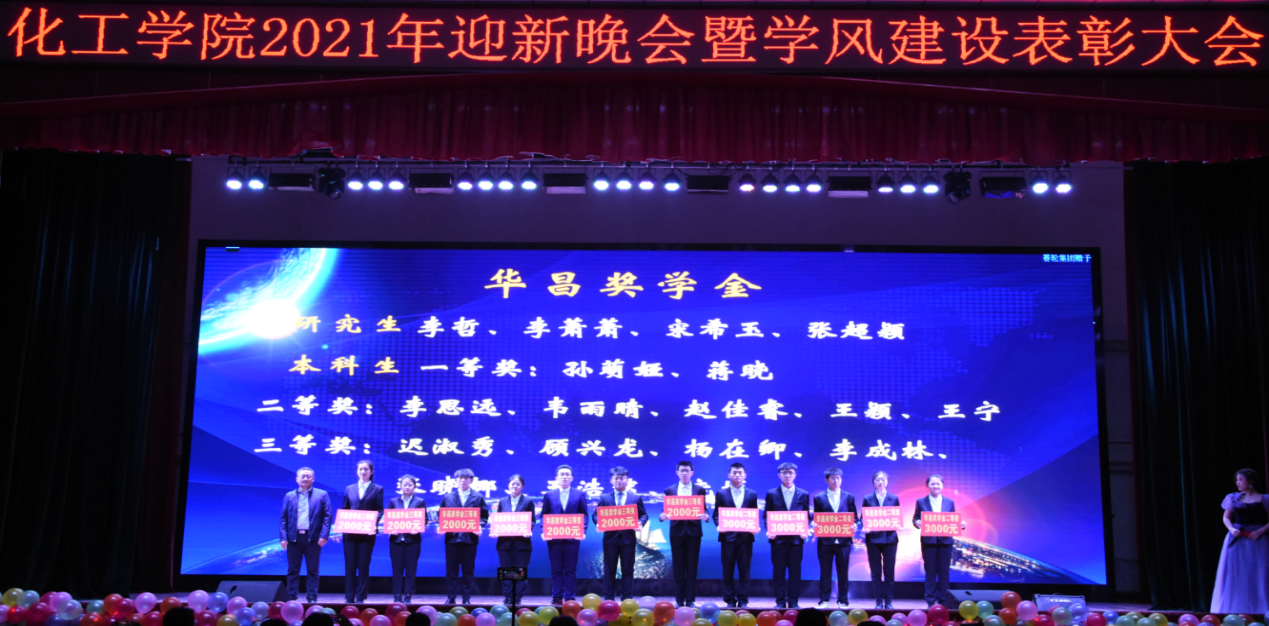12月8日晚,由化工学院主办、山东新和成股份有限公司协办的“青春逢盛世,奋斗正当年”2021年迎新晚会暨学风建设表彰大会在西礼堂拉开帷幕。出席本次晚会的嘉宾有化工学院院长刘福胜,校团委副书记陈兵,化工学院副院长田文德、刘仕伟,化工学院党委副书记孙明媚、团委书记秦洪庆,以及化工学院全体专兼职辅导员。