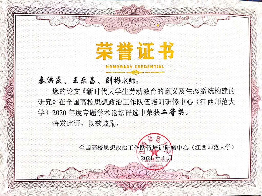 此外,获批山东省社科规划课题1项、教育部协同育人项目1项、山东省艺术重点课题3项、山东省文化和旅游厅课题1项、山东省共青团课题等市级及以上课题18项。发表思政论文18篇。论文获省级及以上奖励14项。2人获评辅导员思政系列副教授。1人获学校思政工作先进个人、1人获学校优秀党务工作者、1人获学校优秀辅导员。