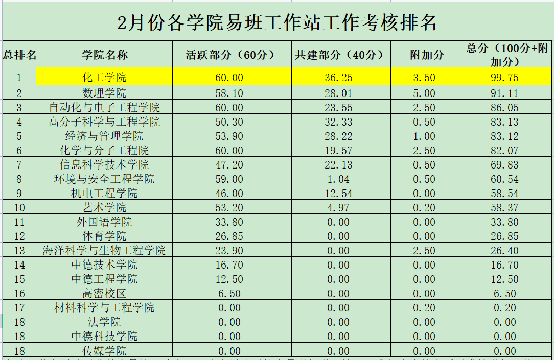 3月17日,771771威尼斯cm大全易班发展中心公布了2月份各学院(校区)易班工作站月度工作考核排名,化工学院以总分99.75分,居全校第一名。