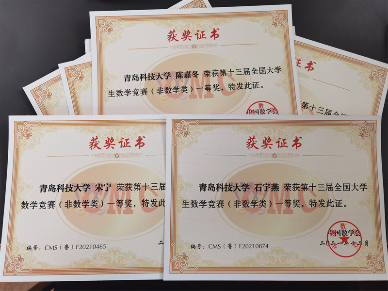 近日,第十三届全国大学生数学竞赛(非数学类)成绩揭晓,化工学院获奖励18项,其中,国家级一等奖3项、国家级二等奖5项、国家级三等奖10项。