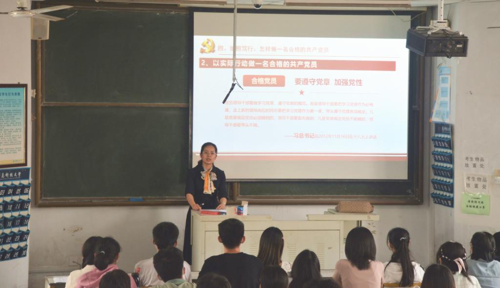 孙明媚以“年轻党员在行动”短片为导入,讲述各行各业年轻党员坚守岗位默默付出的感人事迹,他们以无私的工作态度、忘我的敬业精神,为自己从事的事业付出了满腔热忱,深刻诠释了对党忠诚、敢于担当、无私奉献的优秀品质。随后,孙明媚从申请入党的条件、共产党员标准和共产党员的义务权利三方面进行讲解,为同学们全面解读党员发展流程,引导同学们不断提高党性修养,进一步向党组织靠拢,争取早日成为一名光荣的中国共产党员。最后,孙明媚结合伟大建党精神,激励同学们不断学习科学文化知识,提高政治理论素养,增强党性修养,鼓励同学们牢固树立艰苦奋斗、求是奉献的价值追求,以实际行动为伟大的祖国贡献青春力量。