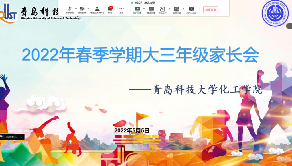 为进一步加强家校协同育人工作,促进学校与家长的有效沟通,让家长了解孩子在学校的学习生活情况,5月5日晚,化工学院2019级以线上会议的方式召开“家校携手,共助学生成长”家长会。会议由2019级辅导员秦洪庆、柳晓阳主讲,2019级学生家长参加。