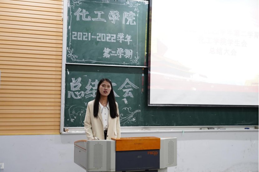 会议伊始,化工学院学生会办公室负责人张雅欣公示了本学期各部门的考核情况,其中包括例会考核情况和活动考核情况两部分。她指出本学期由于疫情原因,大部分活动采用线上方式进行,希望下学期在疫情允许的情况下,各部门能够继续努力,为学生会建设添砖加瓦。接着,各部门代表依次上台进行本学期的工作情况总结,他们都详细地叙述了部门职能、存在不足及整改措施等,并提出会在未来时间里更加努力地为部门发展出一份力。最后,化工学院团委老师李亚楠对本学期工作情况做出总结和评价,她阐述了学生会各部门在本学期取得的成绩及其工作过程中存在的问题,并指出希望各部门做好学生干部的表率工作,在学习与生活中起到榜样示范作用,以此来达到更好地为学生与老师服务的目的。
