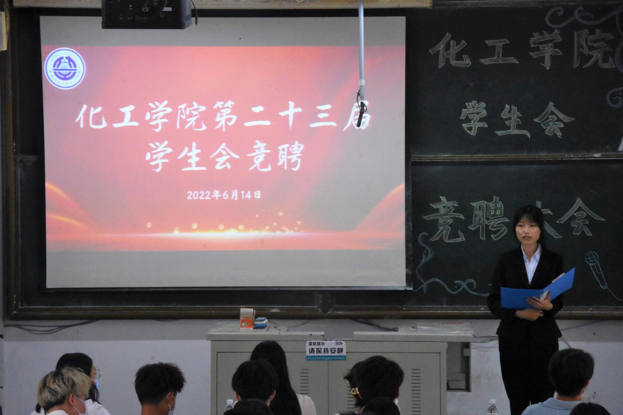 为促进学院学生会工的顺利开展,在工作中总结经验,展望未来,更好地部署下学年的工作安排,化工学院于2022年6月14日在第一教学楼202教室举办第二十三届学生会竞聘大会。团委老师李亚楠、孙希玲以及第二十二届学生会主席团成员出席了本次大会。