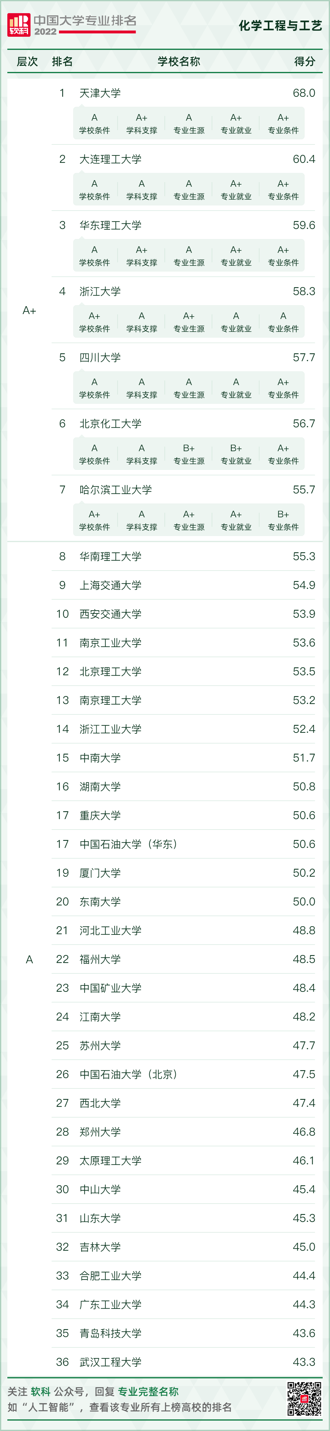 2022年6月18日,高等教育专业评价机构软科正式发布2022“软科中国大学专业排名”。化工学院化学工程与工艺专业在2022软科中国大学专业排名中,位居35位。