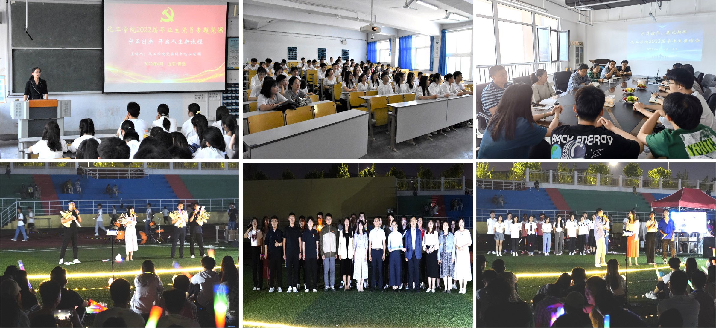 涵养家国情怀,筑梦扬帆起航。学院以党史学习教育为契机,将党史学习教育贯穿毕业生离校工作全过程。围绕“赓续奋斗新征程,乘风破浪向未来”主题,开展形式多样的思想教育活动。学院党委副书记孙明媚为全体毕业生党员讲授“守正创新、开启人生新旅程”党史学习教育主题党课;召开2022届毕业生座谈会,鼓励毕业生在离校之际为学院发展建言献策,助力学院高质量发展;学院举办“最美思政课”文化路演暨2022届毕业生音乐节,节目多角度融入思政元素,引导毕业生树立正确的党史观,增进爱校情感,增强报国信念,带着科大精神、橡胶品格,带着“五有”青春正能量驰骋四海、乘风破浪,开启人生新旅程。