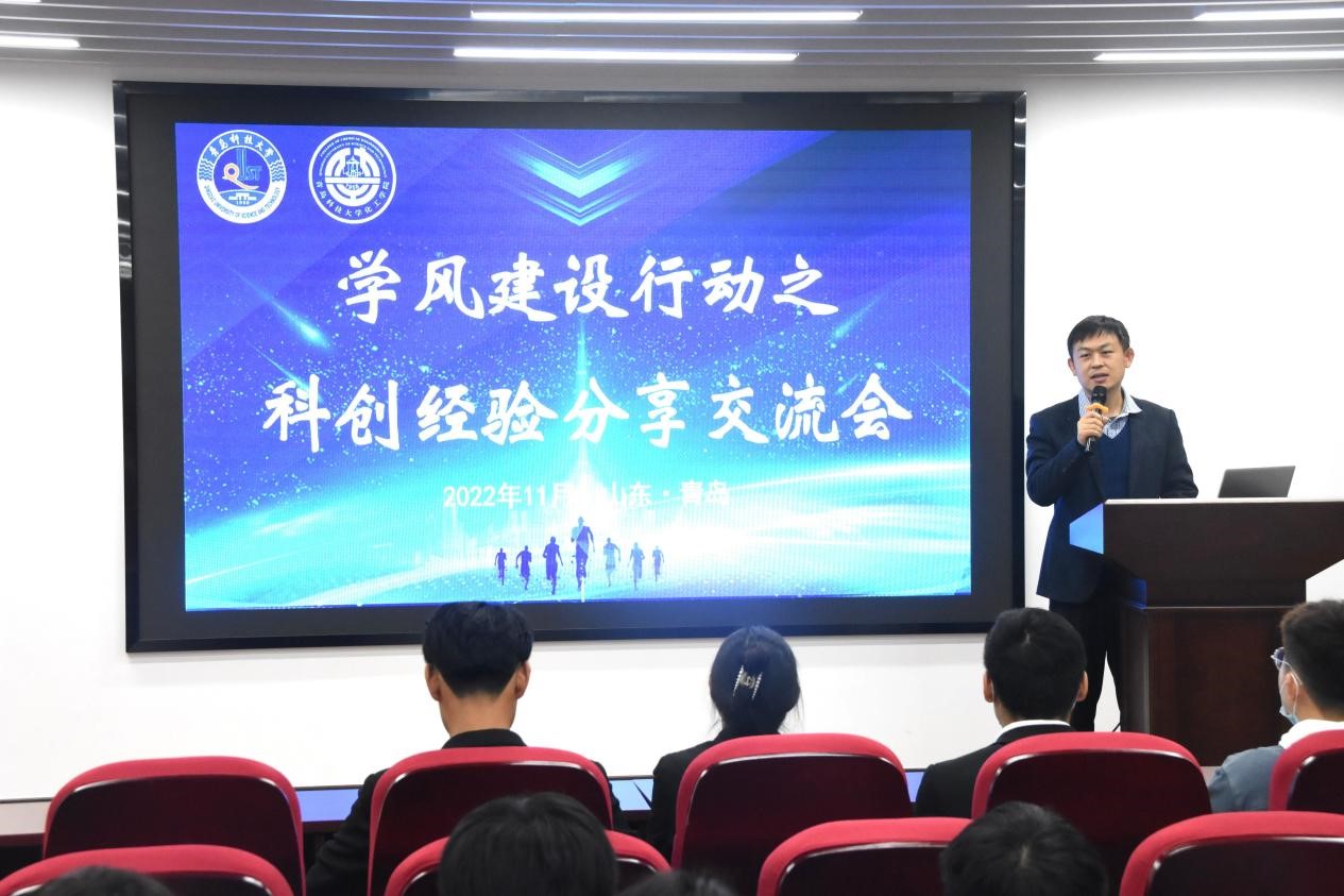 会上,秦洪庆介绍了学院科创工作基本情况以及科创对于人才培养的重要意义。他指出,大学生在校期间参加科学研究、科创竞赛是提高创新能力的有效途径,参加“挑战杯”、“互联网+”等重大赛事不仅使得学生自身科创水平大幅提升,同时也对进一步推动学院的学科建设具有重要意义。