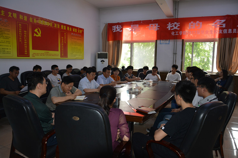 6月19日下午2:00,化工学院“我是母校的名片”-2017届毕业生校友信息员座谈会在学院二楼会议室举行。化工学院院长刘福胜、党总支书记钱翌、副院长田文德、党总支副书记孙明媚,教师代表王政、赵文英、张媛媛。会议由毕业班辅导员刘振川主持。