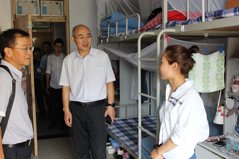 6月24日上午,副校长陈克正到化工学院毕业生宿舍看望慰问即将启程离校的2017届毕业生。学生处处长陈刚、团委书记王峰业、学生处副处长周宪锋、贺伟、化工学院党总支书记钱翌、党总支副书记孙明媚以及毕业班辅导员陪同。