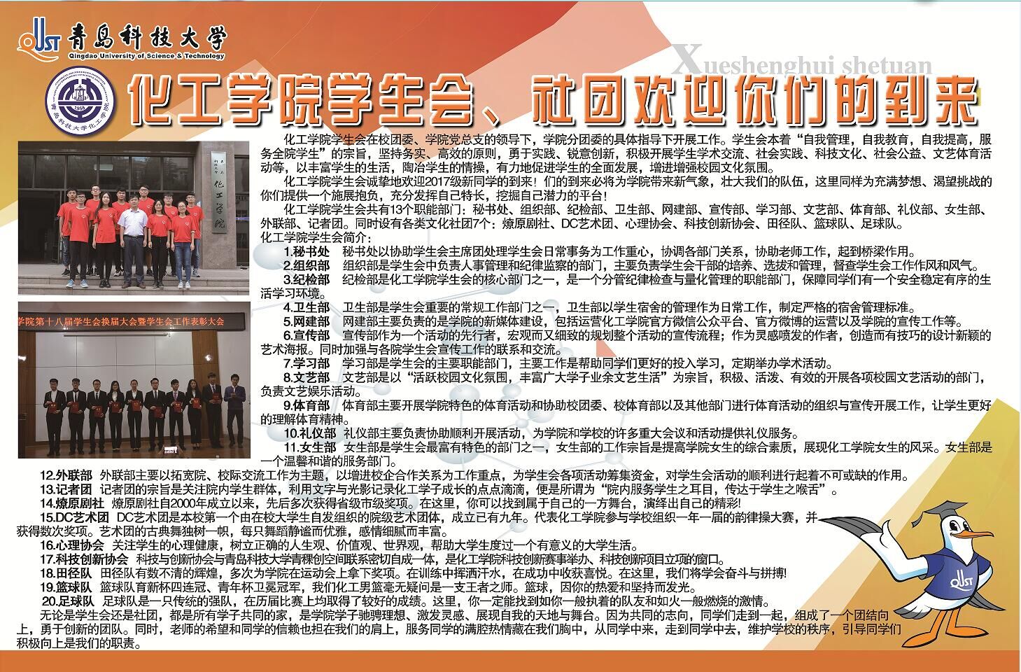 9月1日,为了迎接2017级新生的到来,全方面地展示化工学院的风采,化工学院精心设计制作迎新宣传展板。在迎新生的各项工作紧锣密鼓进行的同时,竖立在化工学院新生接待点的宣传展板已经成为青春广场一道独具特色的靓丽风景。