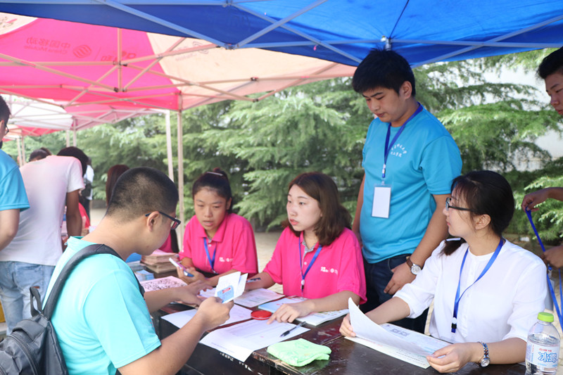 班主任助力迎新。2017级班主任在各班报到点现场,解答学生和家长的疑惑,让每个新生在入校的第一时间就能够结识即将指导自己四年的班主任,极大的拉近了师生之间的距离,增加了学生对学校的信赖。
