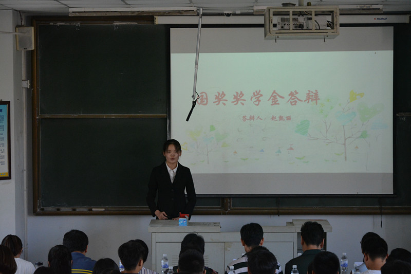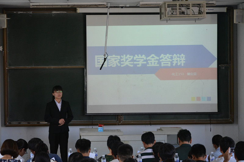答辩会开始之前,主持人介绍了国家奖学金、省政府奖学金的有关情况。随后,各年级申请国家奖学金、省政府奖学金的11名同学一次上台答辩。首先参加答辩的是化工151的尹民同学,他从思想、学习、实践、工作四个方面介绍了自己及其所取得的成绩,他优秀的个人成绩给人留下了深刻的印象。接下来是来自154班的付景文同学,作为VOC外语台台长,他流畅发言让在场同学不禁赞叹。而化工158班的张萌同学不仅学习成绩优异,而且积极带领班内同学参加文明出行等活动,座右铭“不要在应该奋斗的年纪选择安逸,将来成功的自己会感谢今天奋斗的自己”,也激励着每一位同学。最后上台的是制药144班李婷,成绩特别优异的她也特别注重体育锻炼,在她身上,我们看到了满满的正能量,语言活泼幽默而不失严肃,也给同学们树立了一个积极参加锻炼的好榜样。最后,孙明媚做总结讲话,勉励低年级的学生干部向学长、学姐看齐,以他们为榜样,制定奋斗目标,抓好学习,做好科研,积极实践,努力使自己成为全面发展的优秀化工人。