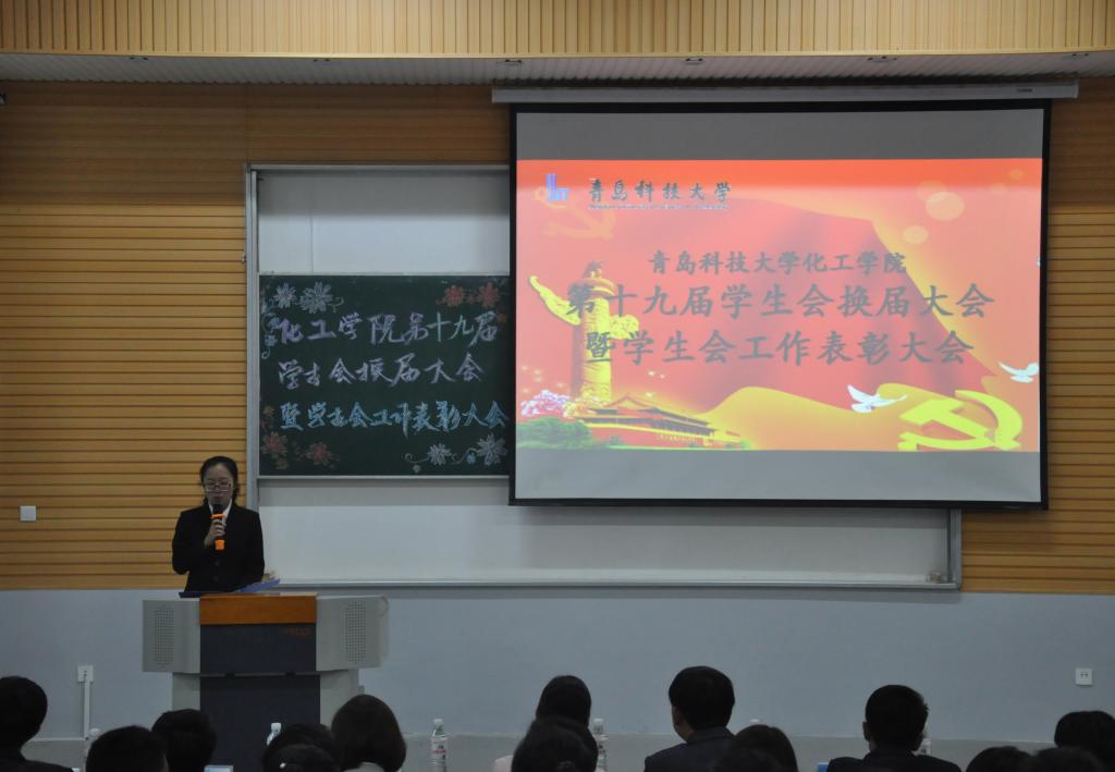 10月17日13:00,化工学院学生会第十九届换届大会暨学生会工作表彰大会在第二教学楼101教室顺利举行。化工学院党总支副书记兼副院长孙明媚,分团委书记秦洪庆,分团委老师郝雄文、耿赛、王乐昌、刘稳荣、付文静、王勇、李国选,校学生会副主席盖超杰,第十八届学生会主席刘梓良,第十九届学生会主席宋希玉,第十八届学生会主席和部长代表,第十九届学生会全体成员以及其他兄弟学院学生会代表出席了本次大会。