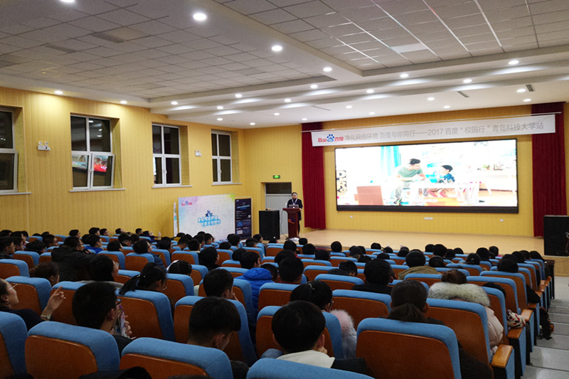 12月12日下午,由学生处主办、化工学院承办的百度网络安全“校园行”宣讲会暨百度AI人工智能科普课在四方校区讲学厅举办。百度内容安全中心产品运营经理李方超、百度青岛智创基地总负责人于海燕担任主讲嘉宾。来自四方校区各学院师生代表240余人参加讲座。