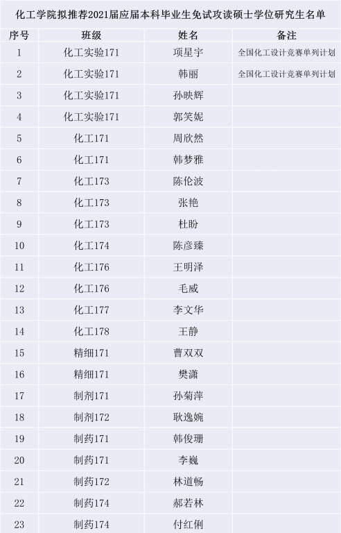 经个人申请,并依据学校和我院《771771威尼斯cm大全2021届应届本科毕业生推荐免试攻读硕士学位研究生遴选实施办法补充细则》等文件规定,确定项星宇等23名同学获得我院2021年推免攻读硕士资格,现进行公示,公示期为3天。