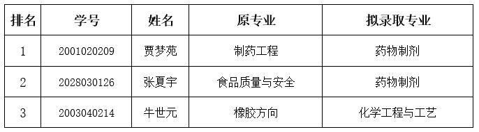 化工学院转专业结果公示如下,如有异议请在三天公示期内反馈,电话:84023400