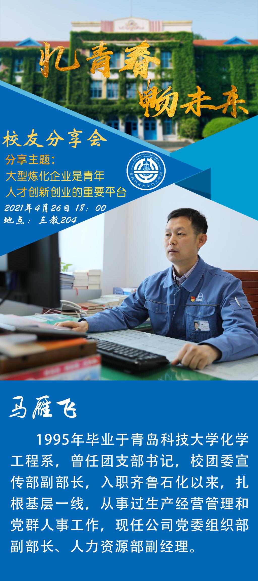 化工学院“忆青春,畅未来”校友分享会之“大型炼化企业是青年人才创新创业的重要平台”专场讲座公告