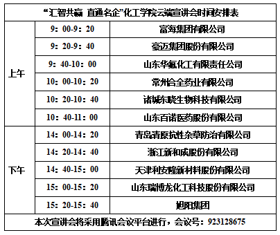 为更好地搭建毕业生与优质用人单位的双选平台,促进毕业生更充分更高质量就业,化工学院将于4月30日于线上举办“汇智共赢 直通名企”2022届毕业生春季云端招聘会,此次招聘会共邀请了富海集团、豪迈集团、常州合全药业等10家省内外优质石油石化、化工制药类企业,欢迎广大同学积极参与。
