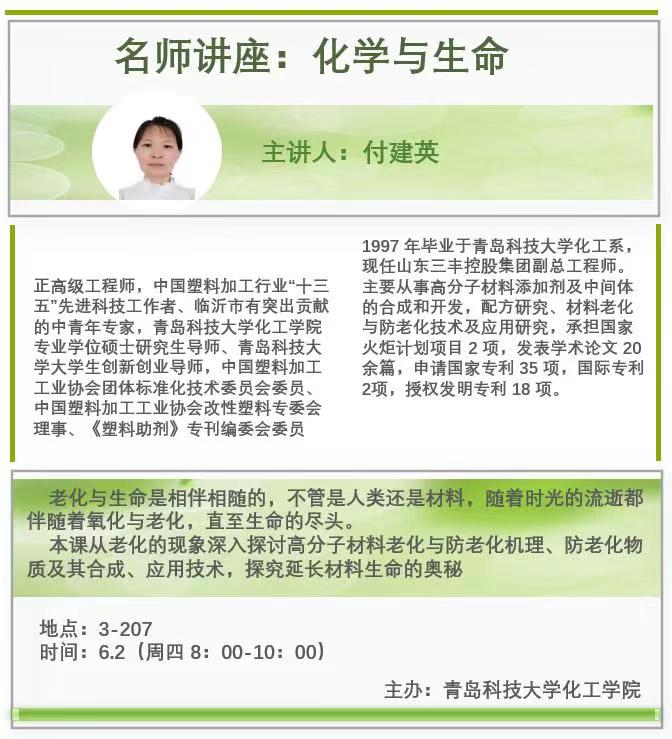老化与生命是相伴相随的,不管是人类还是材料,随着时光的流逝都伴随着氧化与老化,直到生命的尽头。而老化与化学息息相关,讲座从老化的现象深入探讨高分子材料老化与防老化机理、防老化物质及其合成、应用技术,探究延长材料生命的奥秘。