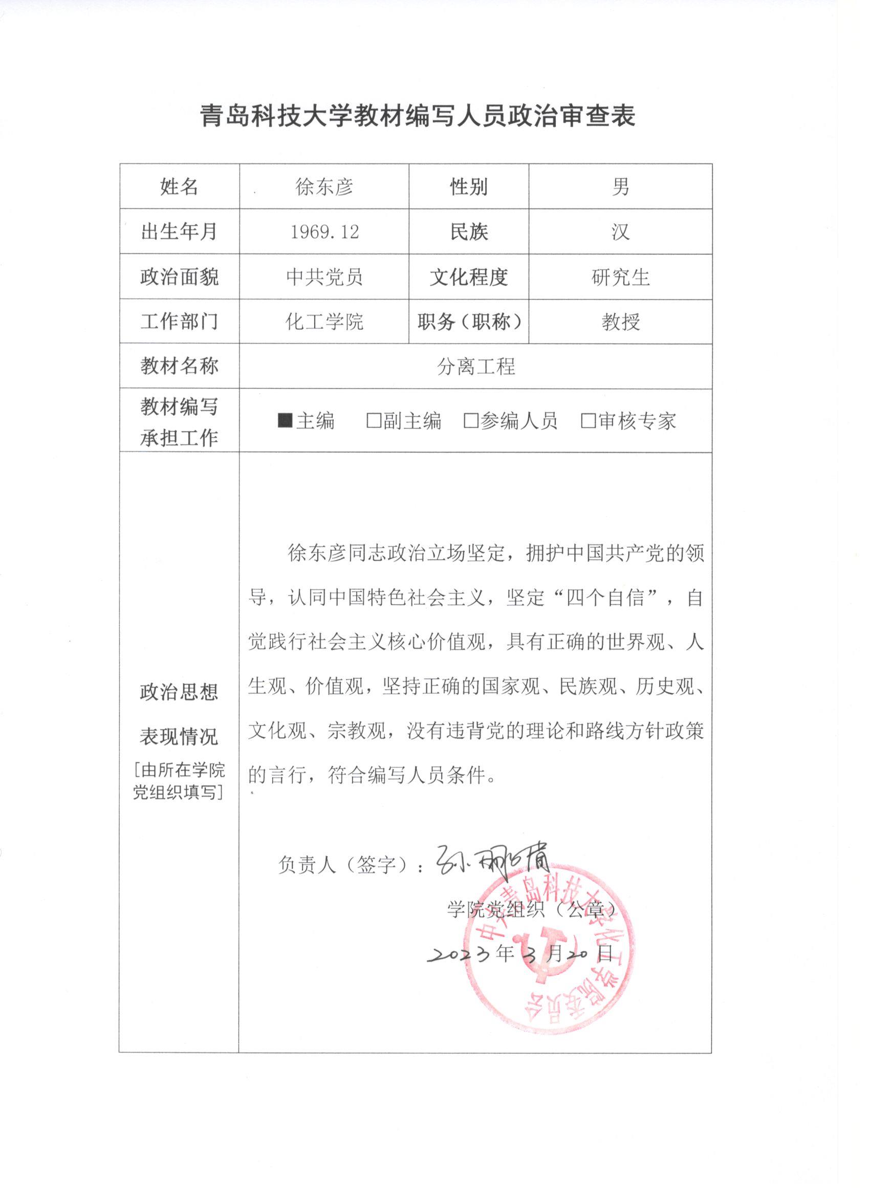 化工学院关于石油和化工行业“十四五”规划教材申报教材编写人员政治审查的公示