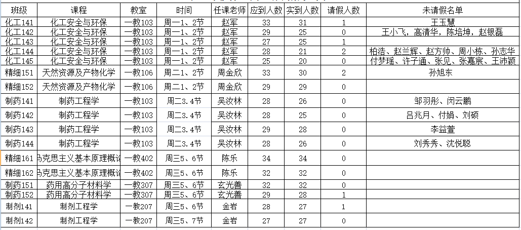 为了加强化工学院的学风建设,营造良好的学风和班风,促进学院学生的全面发展,化工学院分团委对学生上课情况进行了抽查,现将结果进行公布,对缺课同学进行全院通报批评。请同学引以为戒,严格遵守学校的各项规章制度,杜绝此类现象的发生。
